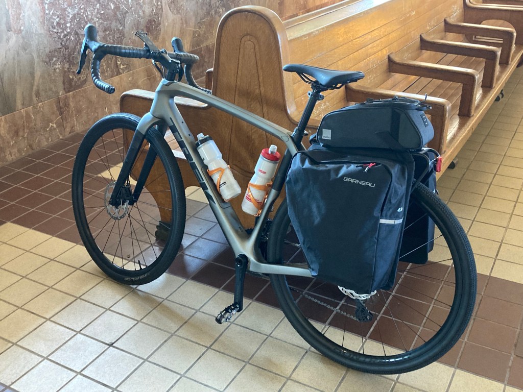 Physically, I was ready for the demands of the trip… or at least my legs were. The undercarriage, not so much. We got into a comfortable pattern: after breakfast (and NYT word games), we head out around 8:00 am when the air is cool, and ride at an easy 12-13 mile pace for four hours or so. It’s lunchtime. If possible, we sit in a nice padded booth. We take our time eating and drinking plenty of water, then get back on the bikes and ride for 2-3 more hours… and we’re at >60 miles. Just like that. My concerns that we’d reach our physical limits and still be 20 miles from a town with a hotel never materialized.