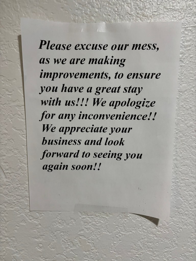 The day went almost entirely according to plan (that is, after we had to double-back following a wrong turn that put us on an I-40 on-ramp). We took a snack/drink break in Canute about noon, at which time we booked our rooms for tonight. (There was a brief moment of anxiety when our first choices were already booked, but we found good rooms at a good price at Comfort Inn.) We arrived in Elk City in the early afternoon and headed toward our primary destination: a laundromat. We stopped for lunch at a Carl’s Jr. right around the corner from the laundry, and booked our rooms for Monday night. (We now feel pretty confident that we’ll be in Groom on Monday, but there’s only one place to stay… and we ain’t taking any chances.) It took us about an hour to get some clean clothes—unlike last year’s laundry day in Springfield, MO, we did not have any long conversations with thrice-married process servers who like to de-haze people’s headlights with ant poison. (Yes, that happened.) We were checked in to our rooms by 4:15.
