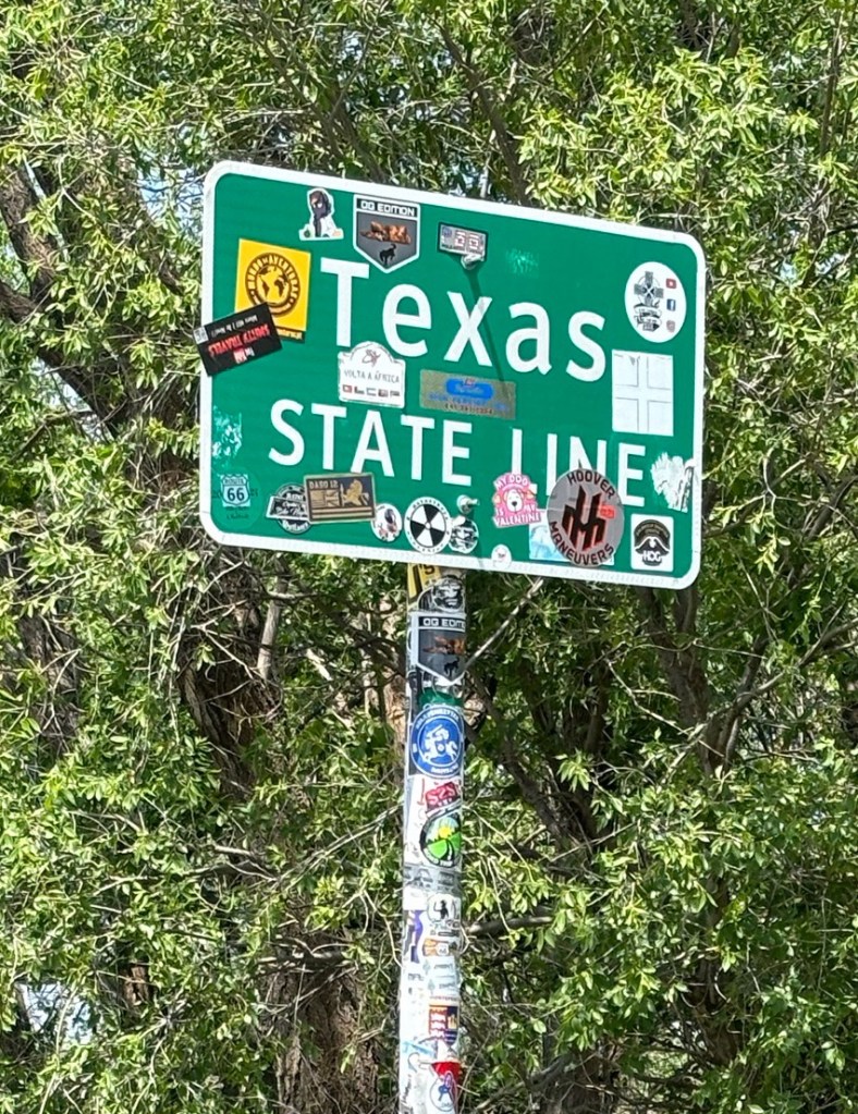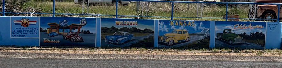 We spent a nice stretch biking on the Roger Miller (hence the title of this post) Memorial Highway through Erick, Oklahoma, where Miller grew up. (He was born in Fort Worth, but his father died when he was only a year old, and Roger and two brothers were sent to live with his father’s brother on a farm outside Erick.) Both Jon and I failed to take a picture of a rather nice Roger Miller mural. Commemorative murals are all along Route 66, and most of them look like they were rendered by a graduate of the “Draw Pedro” School of Art. The Roger Miller mural in Erick was top-drawer.